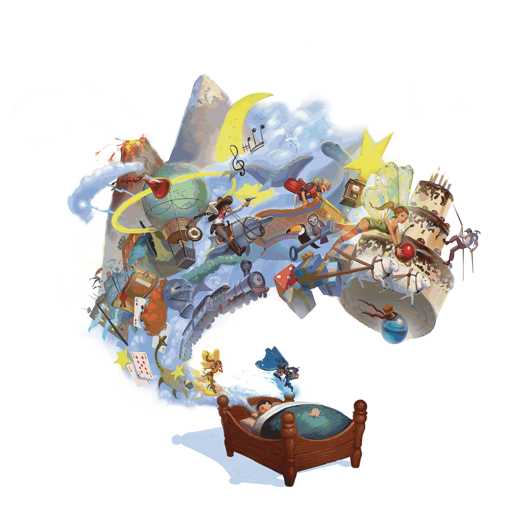 除了梦中人外,游戏中还有三个角色,分别是:小妖怪,沙人和小精灵。小精灵会帮助梦中人猜出更多的词汇,而小妖怪则试图引导梦中人误入歧途,尽量给出无效提示,沙人希望说梦人在正确和错误答案之间找寻一个平衡点。回合结束后,梦中人左手边的玩家成为下一个梦中人,新一轮的游戏又开始了…