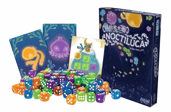 在《缤纷夜光虫》中,玩家依次潜入谭中,收集版图上的夜光虫骰子,并将它们安全的存放在罐子里。游戏共进行两轮,游戏流程分别是:收集夜光虫、存放夜光虫、装满罐子。