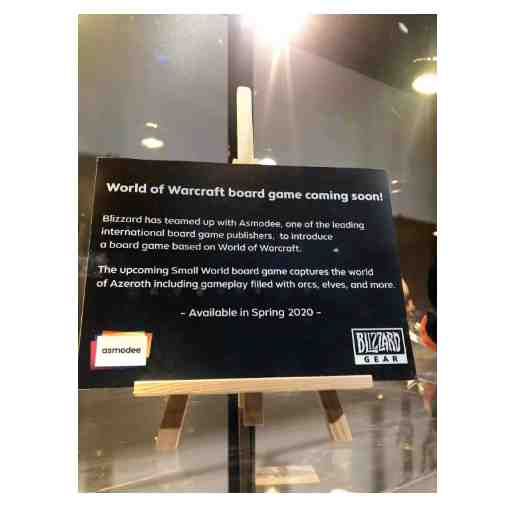 BlizzCON暴雪嘉年华于2019年11月1日-2日在加州阿纳海姆会议中心举行,暴雪在嘉年华现场公布,已与全球领先的桌游游戏公司Asmodee达成合作,即将把暴雪最具人气的游戏《魔兽世界》带入到桌面游戏的世界中,预计在2020年春季推出基于经典游戏《小小世界》为机制的桌游版《魔兽世界》。